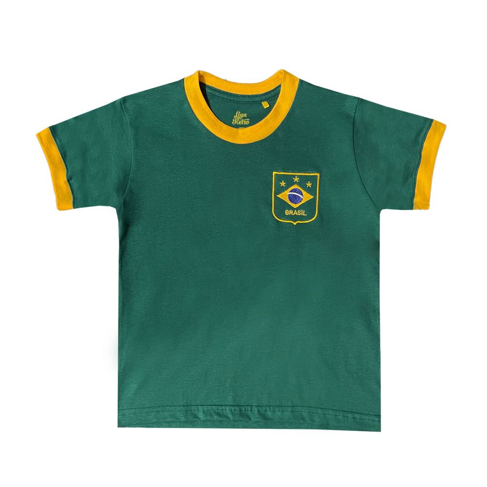 Na tradicional cor verde, essa camisa carrega a elegância e o simbolismo das peças históricas da Seleção, com modelagem confortável e perfeita para acompanhar os pequenos nos estádios, nas ruas ou nas brincadeiras com a bola no pé. Uma homenagem em miniatura ao legado do futebol brasileiro.