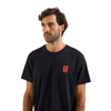 Etiqueta tecida termocolante aplicada no peito, trazendo um toque premium.