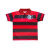 A Camisa Infantil Retrô Flamengo 1995 – O Centenário em Vermelho e Preto resgata esse momento mágico com o mesmo visual marcante daquela época: listras largas em vermelho e preto, gola polo estilosa e o escudo com a estrela dourada, símbolo do título mundial de 1981.