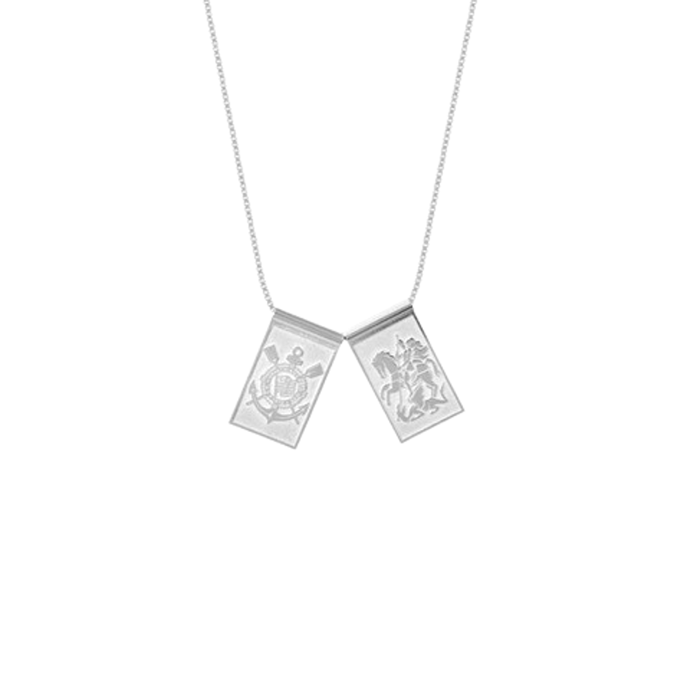 Este escapulário traz o escudo oficial do Corinthians junto à imagem de São Jorge, símbolo de proteção e coragem. Produzido em prata 925, é acompanhado por uma corrente veneziana de 62 cm — perfeito para uso confortável no dia a dia.