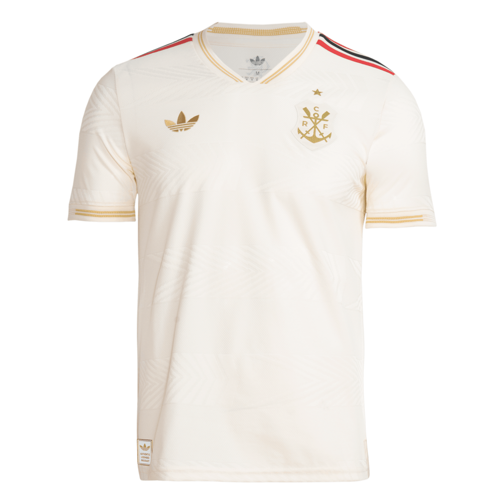 Com 130 anos de futebol brilhante na esteira do CR Flamengo, esta elegante terceira camisa autêntica da adidas homenageia as origens do clube na remo. Faz uma declaração com um emblema vintage, detalhes em ouro e argolas sutis criadas a partir de uma engenharia inspirada no movimento de remadas. Seu desempenho cortado e o tecido leve proporcionam um jogo focado toda vez que você entra em campo.